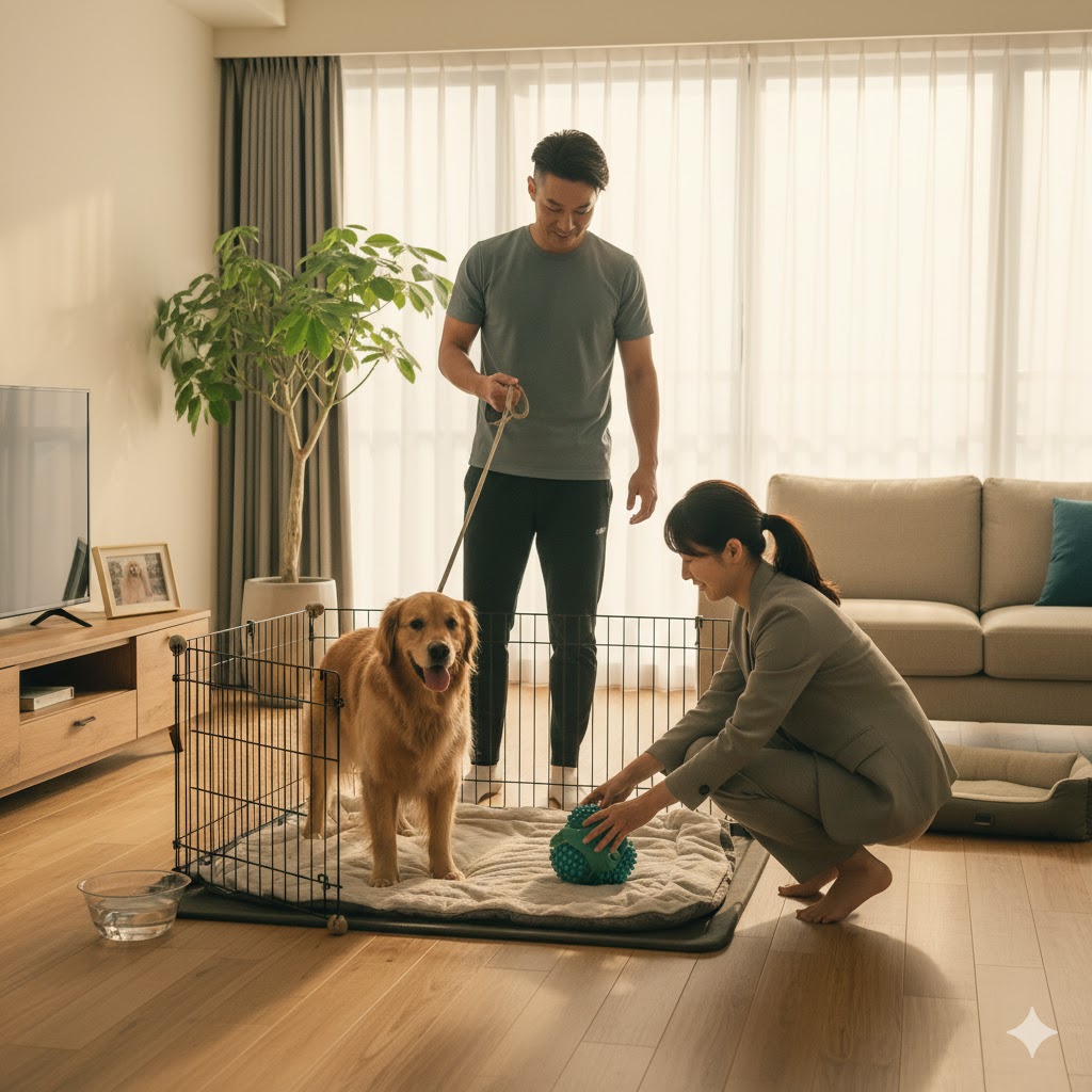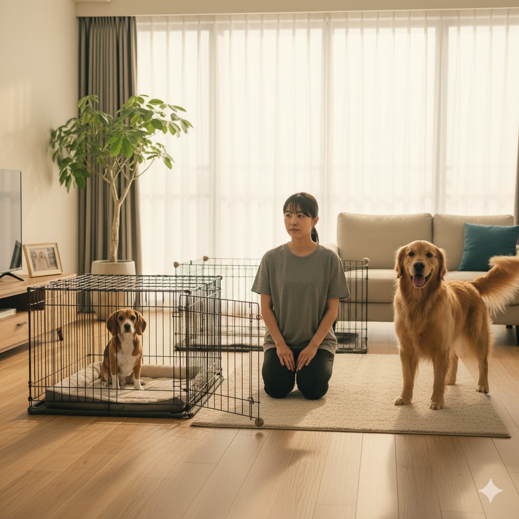 犬が安全で快適に留守番をするためには、環境整備が不可欠です。ここでは、ケージや放し飼いの選び方から、問題行動への対処、一泊や旅行といった長時間の留守番への備えまで、具体的な方法を解説します。