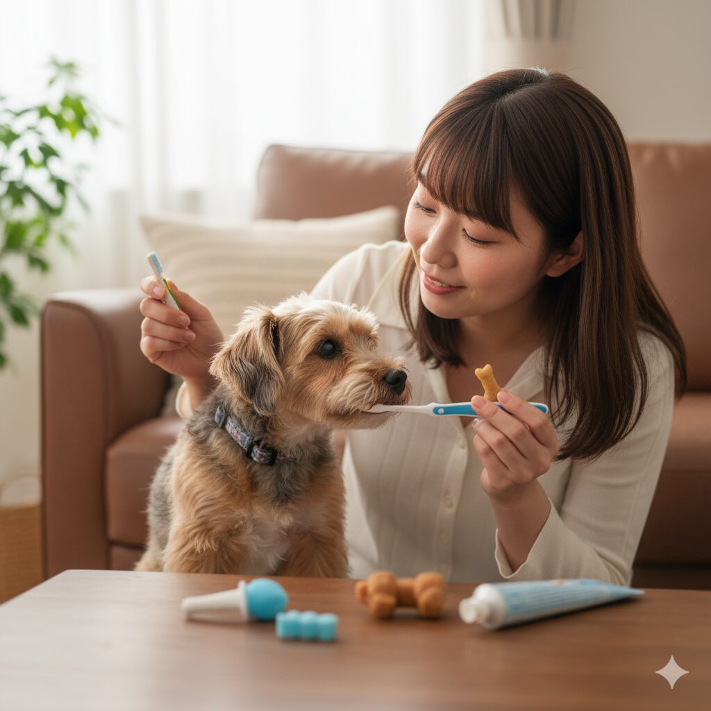 • 歯磨きが苦手な犬には、まず口元を触る練習から始めましょう