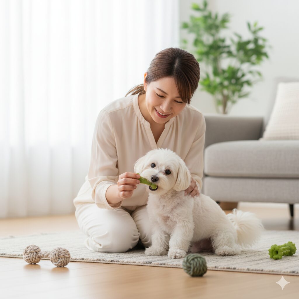 おもちゃの中には、噛むことで歯垢を除去する効果が期待できるデンタルおもちゃがあります。天然素材や特殊な形状をしたおもちゃは、遊びながら自然とデンタルケアができるため、歯磨きを嫌がる犬に特に有効と考えられます。
